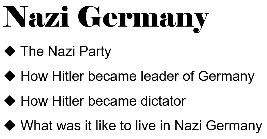 Today you are going to start your topic on Nazi Germany!