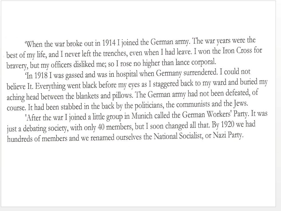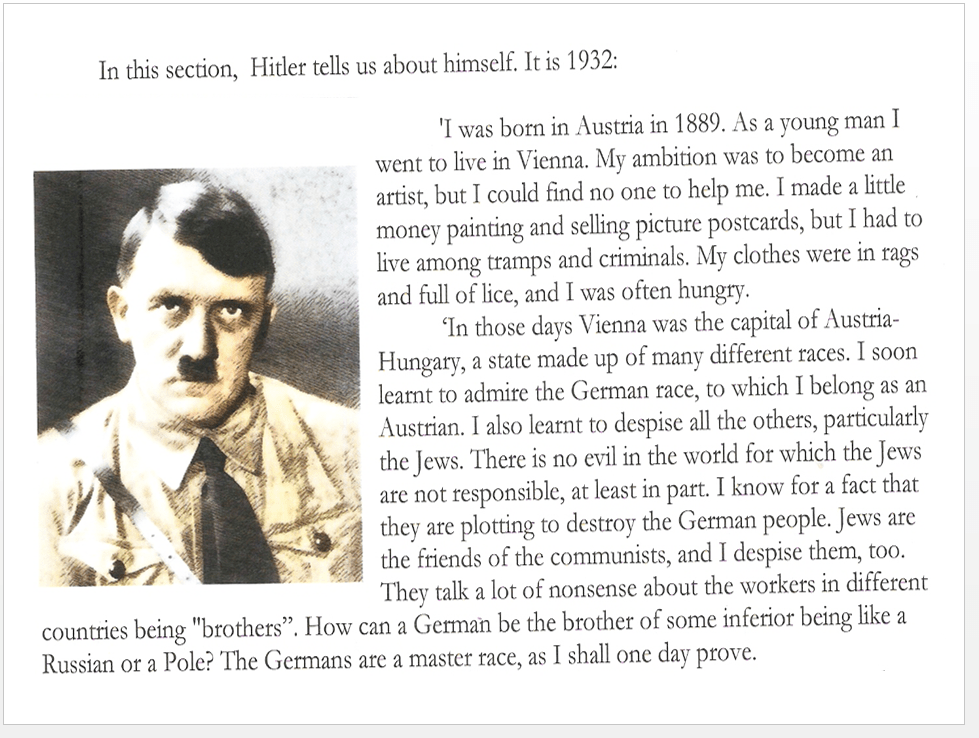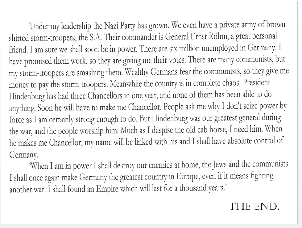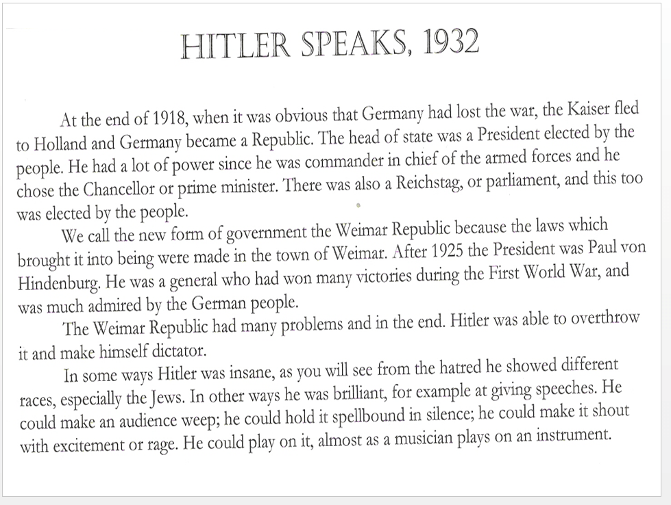 Read the article called “Hitler Speaks” from pages 4-5.