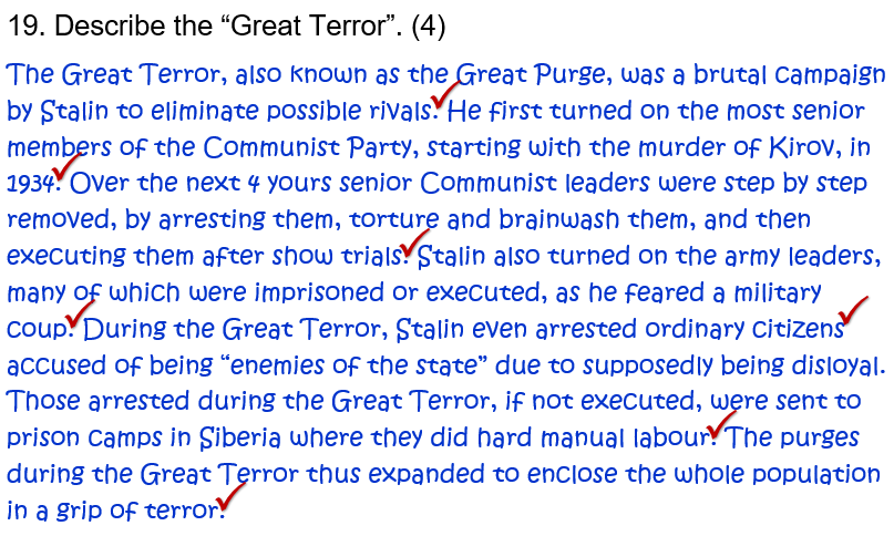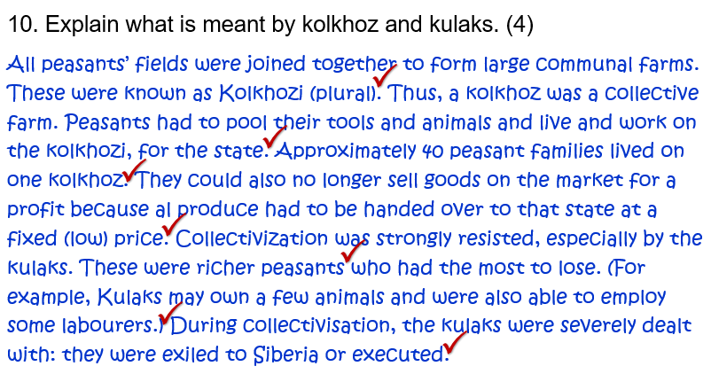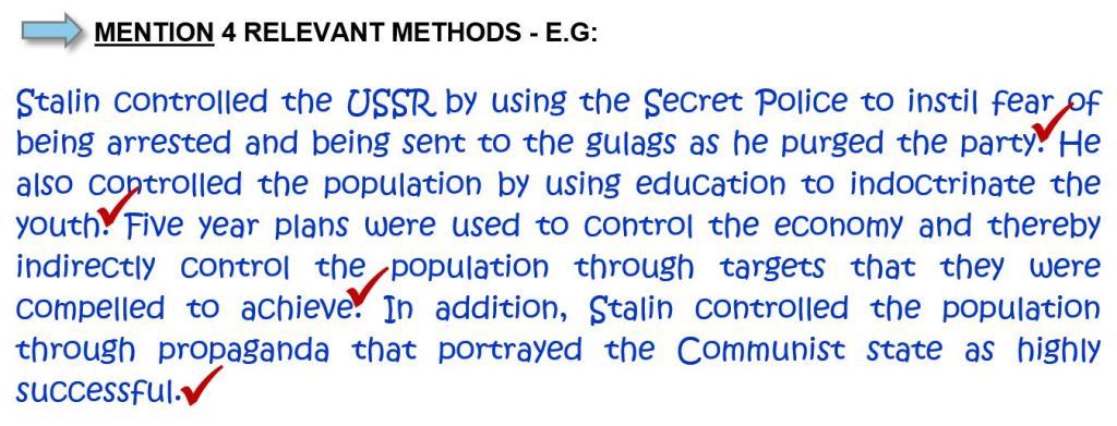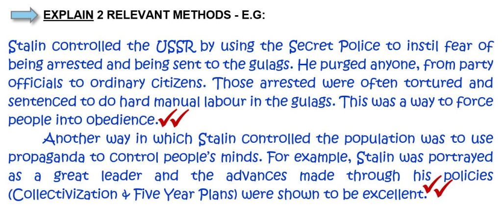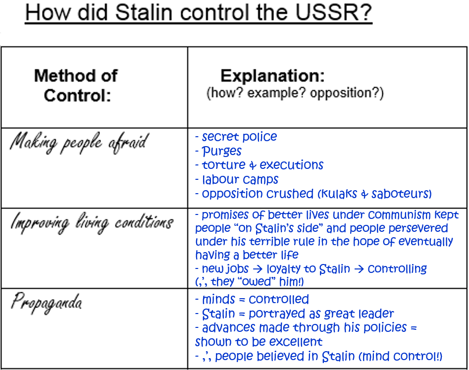 The information on the “How did Stalin control the USSR?” table (above), is also relevant to the 10-mark question…