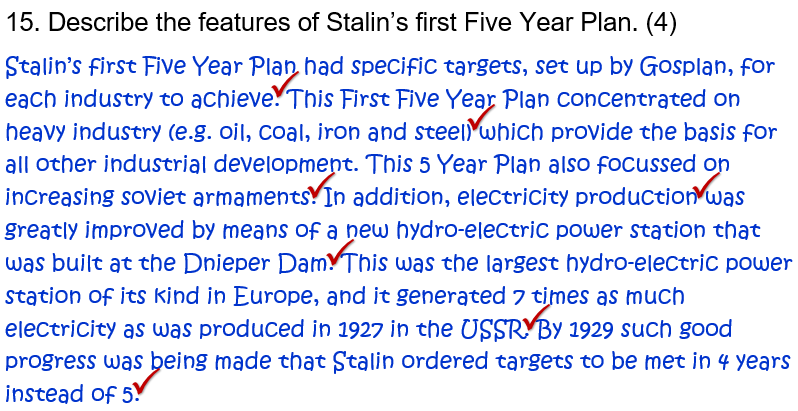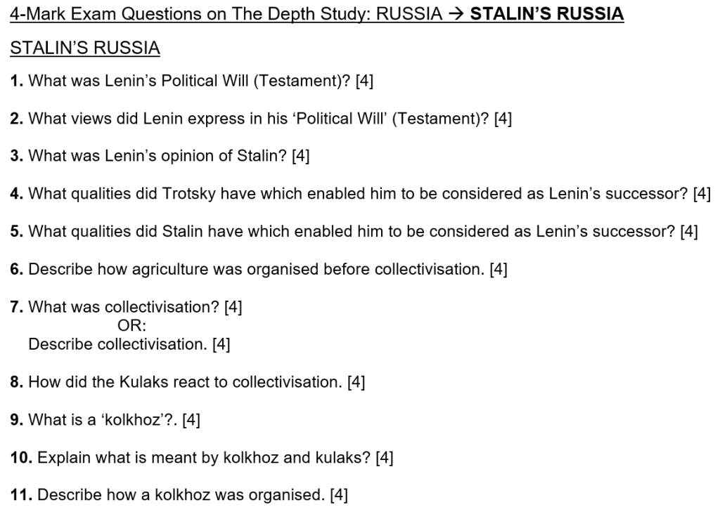 Below is a complete list of 4-mark exam questions on Stalin’s Russia. You should be able to answer any of them!