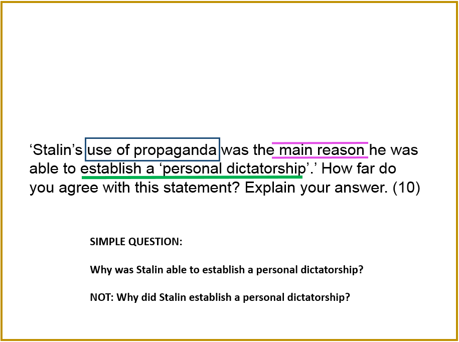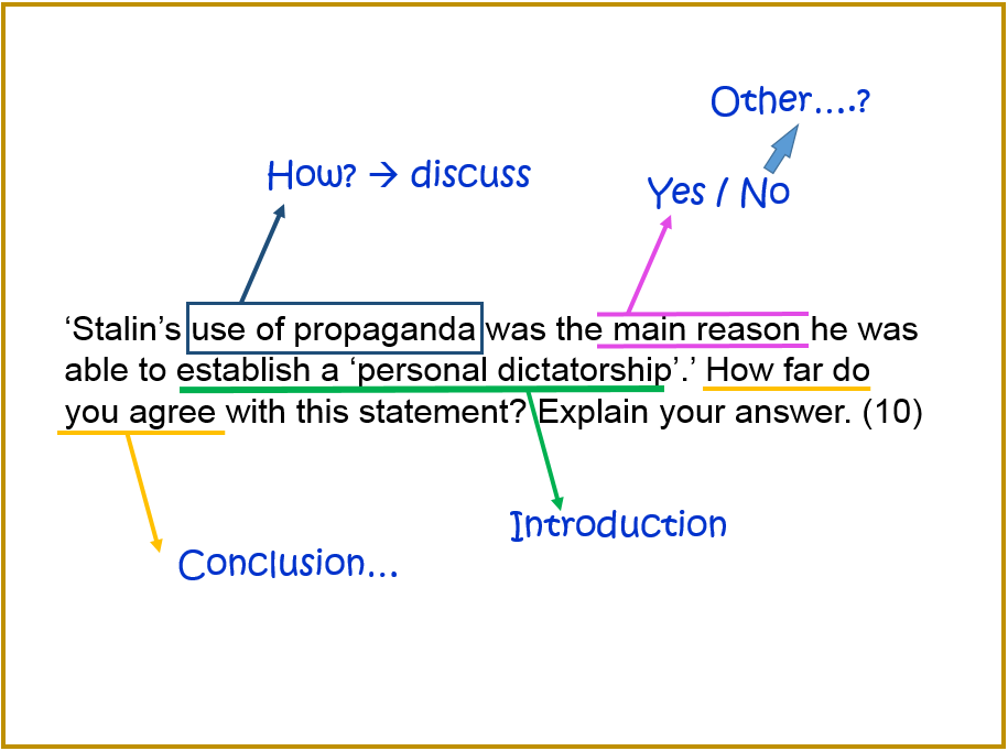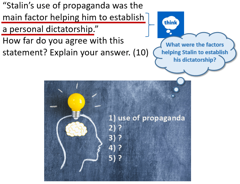 (c) ‘Stalin’s use of propaganda was the main reason he was able to establish a ‘personal dictatorship’.’ How far do you agree with this statement? Explain your answer. (10)