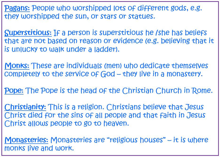 Let’s make sure that you also understand the following words mentioned in the article on “Anglo-Saxons and Religion”: