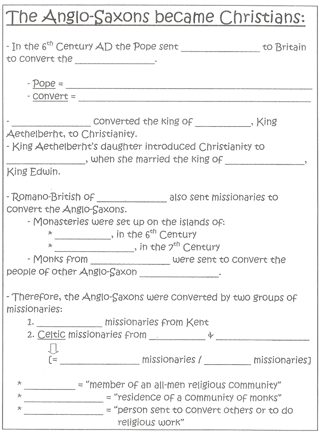Anglo-Saxons became Christians – fill-in Task. (1:36 minutes long)