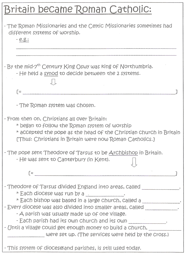 Britain became Roman Catholic – fill-in notes. (1:33 minutes long)