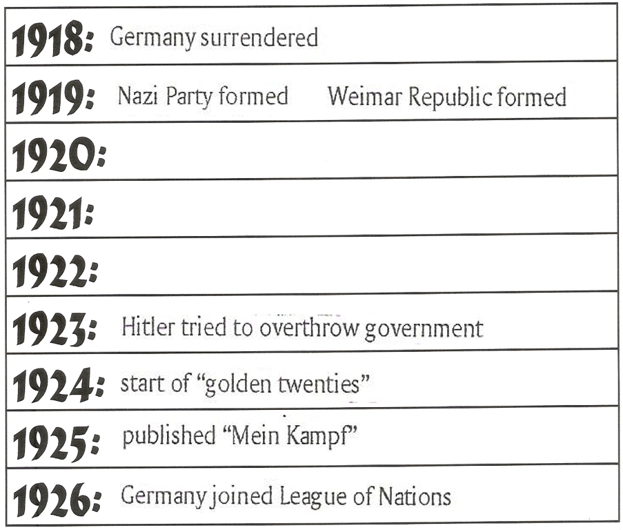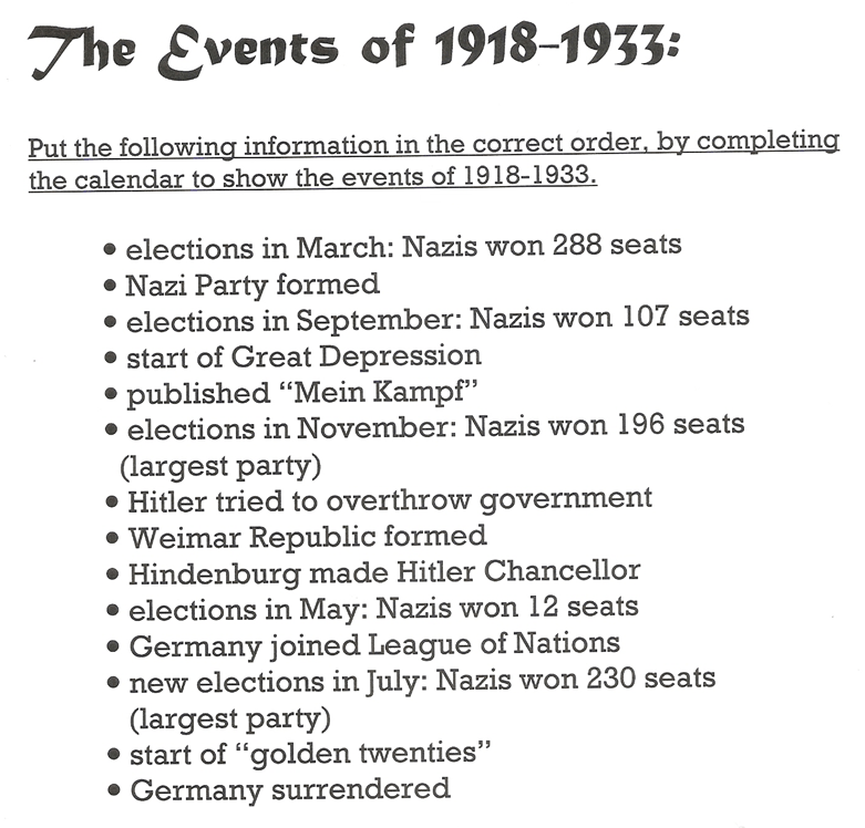 Now, complete the calendar by filling in “The Events of 1918-1933” in the correct chronological order on the calendar-timeline (p.23).