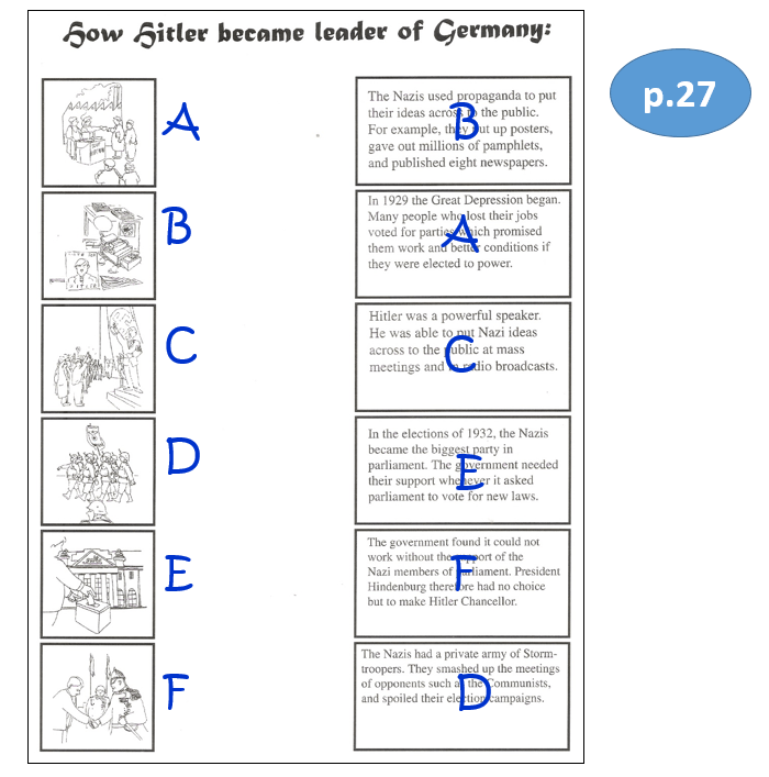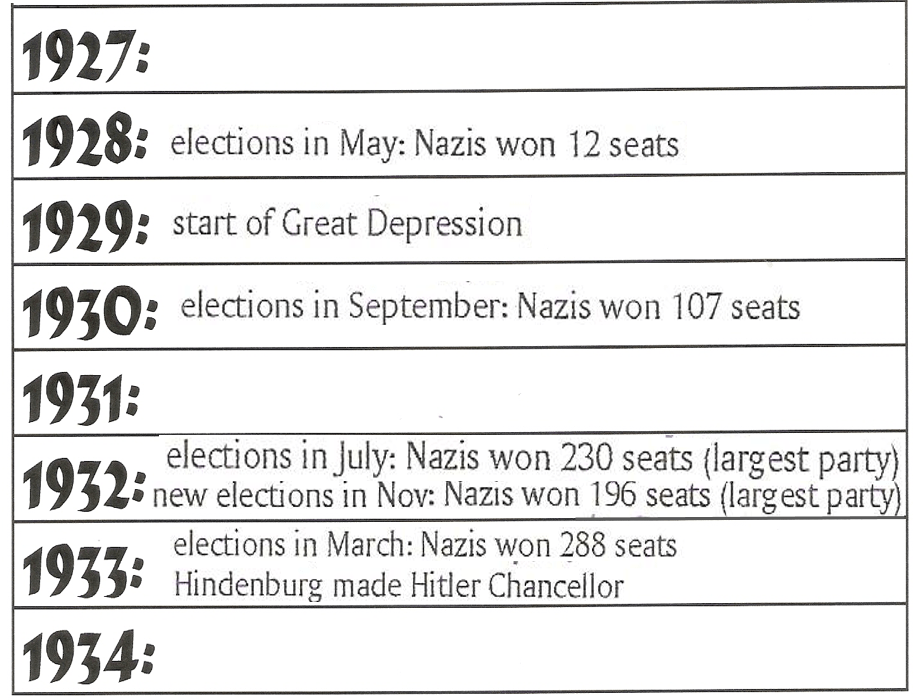 Consider the events that led up to Hitler’s rise to power by reading the calendar events on p.22. (The events are not in chronological order…)