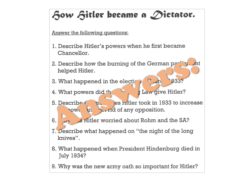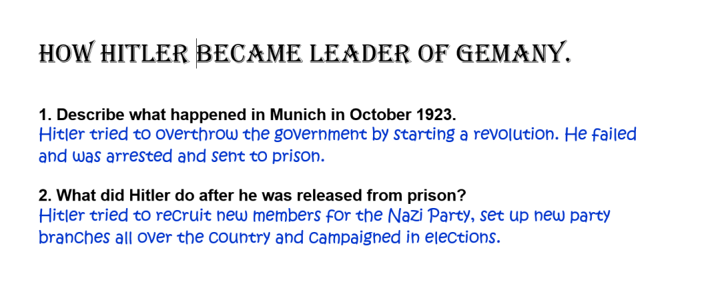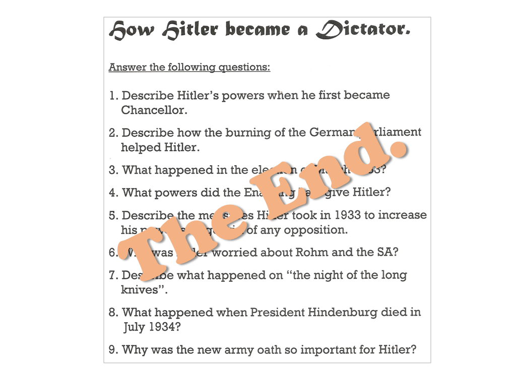 Read the information and instructions (on p.29) for the Tasks on “How did Hitler become dictator of Germany?”.