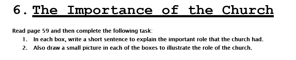 Complete the worksheet (provided) to show the important role that the Church played in Anglo-Saxon Britain and after…
