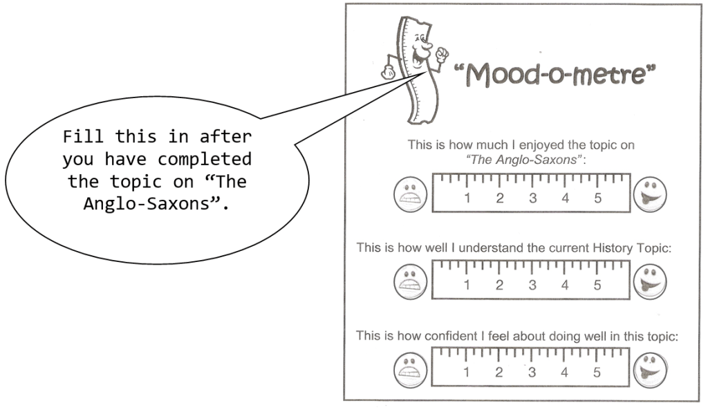 Finally, complete the “mood-o-metre” (on p.37) to show how you feel about the topic on “The Anglo-Saxons” …!