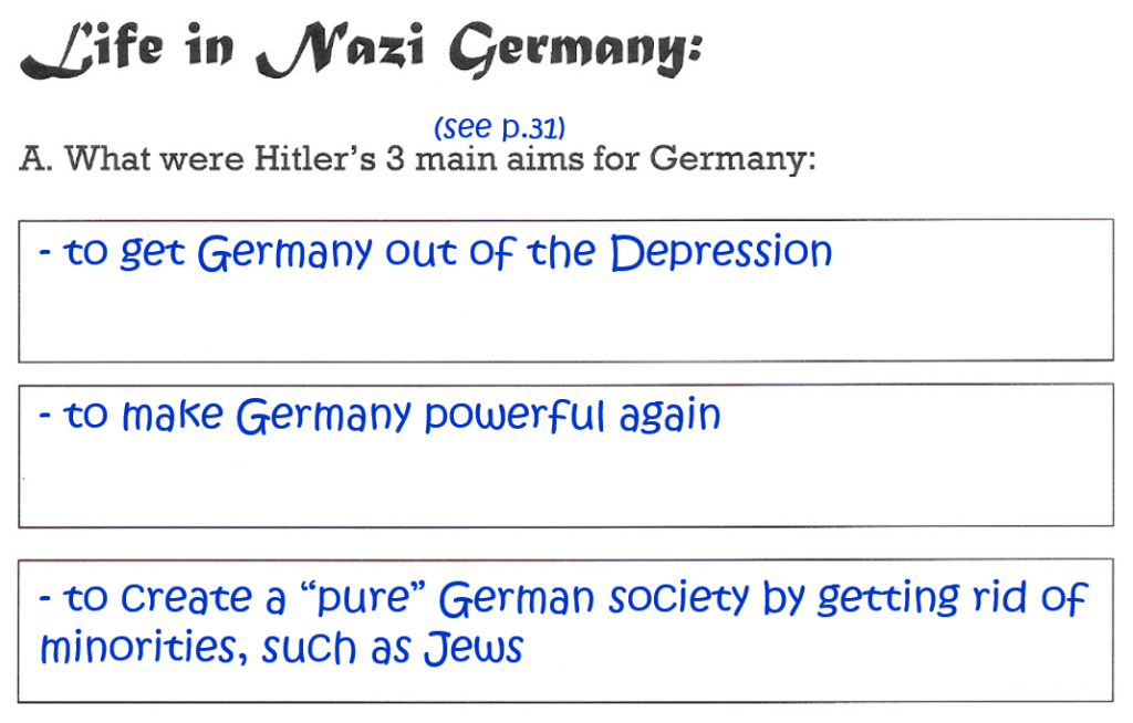 Now, do either the rest of this task on “Life in Nazi Germany” (p.38), OR do the Questions on “Hitler’s Germany”(p.37).
