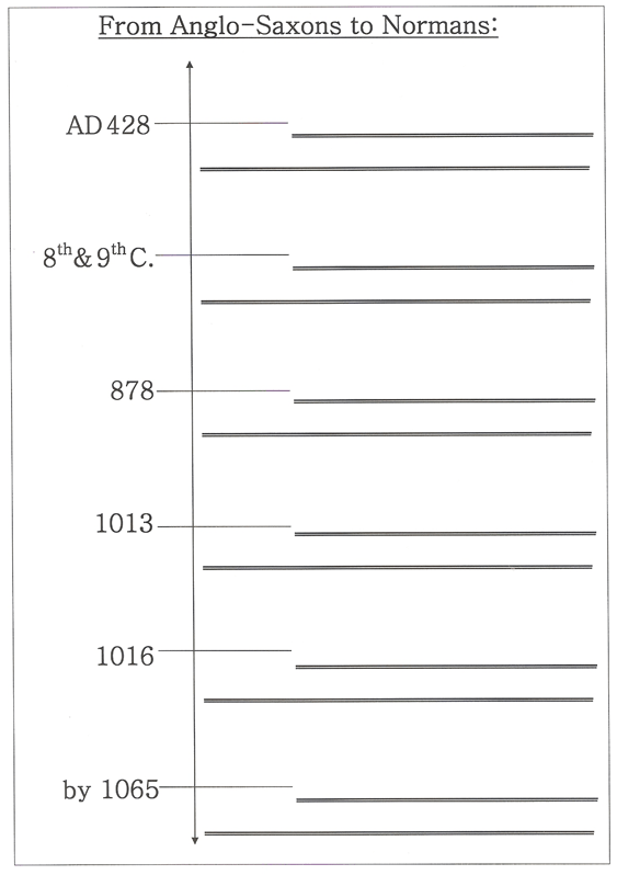 Fill in the missing words on the timeline “From Anglo-Saxons to Normans”, p.61.