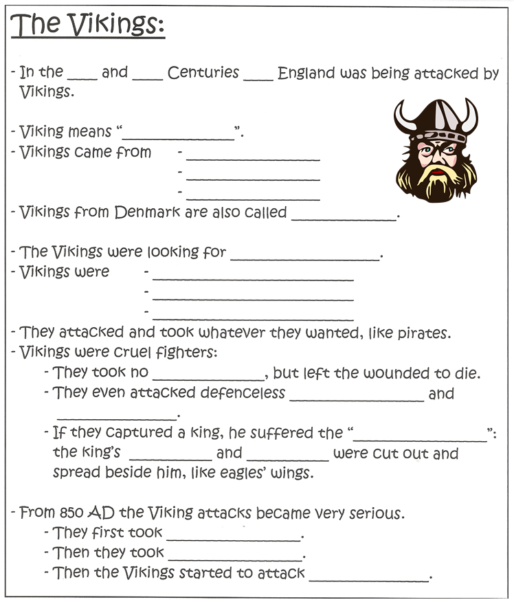Fill in the missing words on the notes on “The Vikings”, p.62.