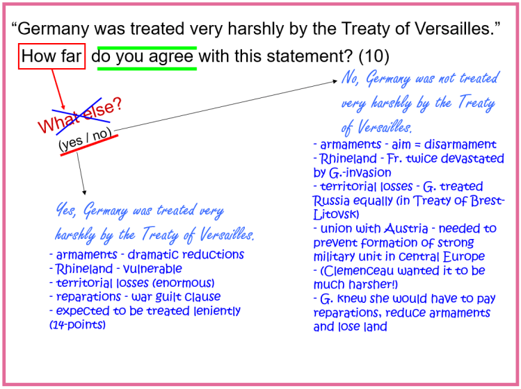 “Germany was treated very harshly by the Treaty of Versailles.” How far do you agree with this statement? (10)