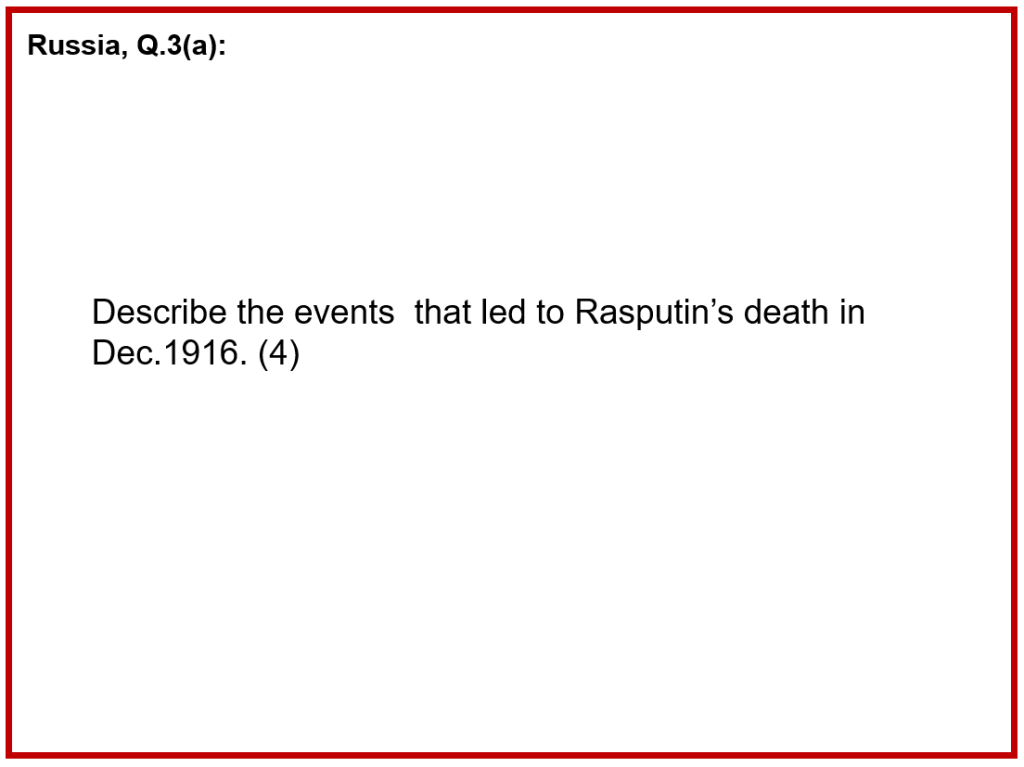 Now answer Russia Q3 (a) in full (“timed”) in your book – you have 5 minutes to complete the answer…