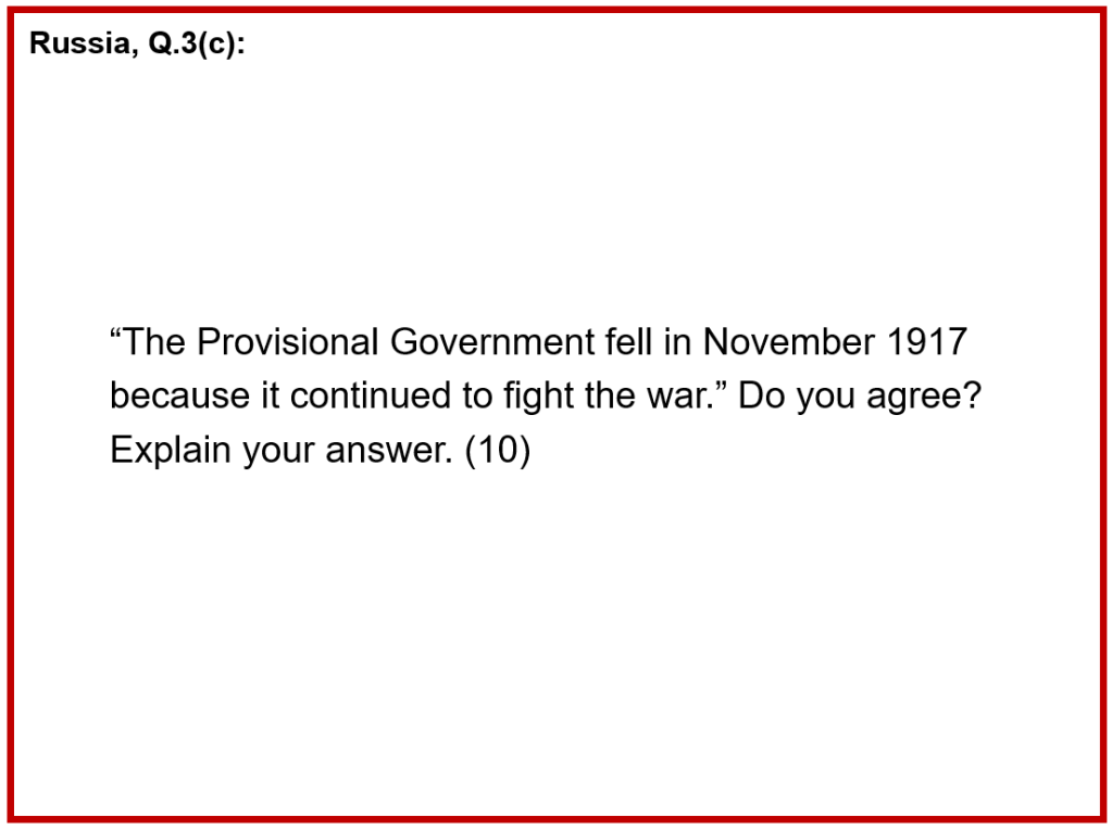 “The Provisional Government fell in November 1917 because it continued to fight the war.” Do you agree? Explain your answer. (10)