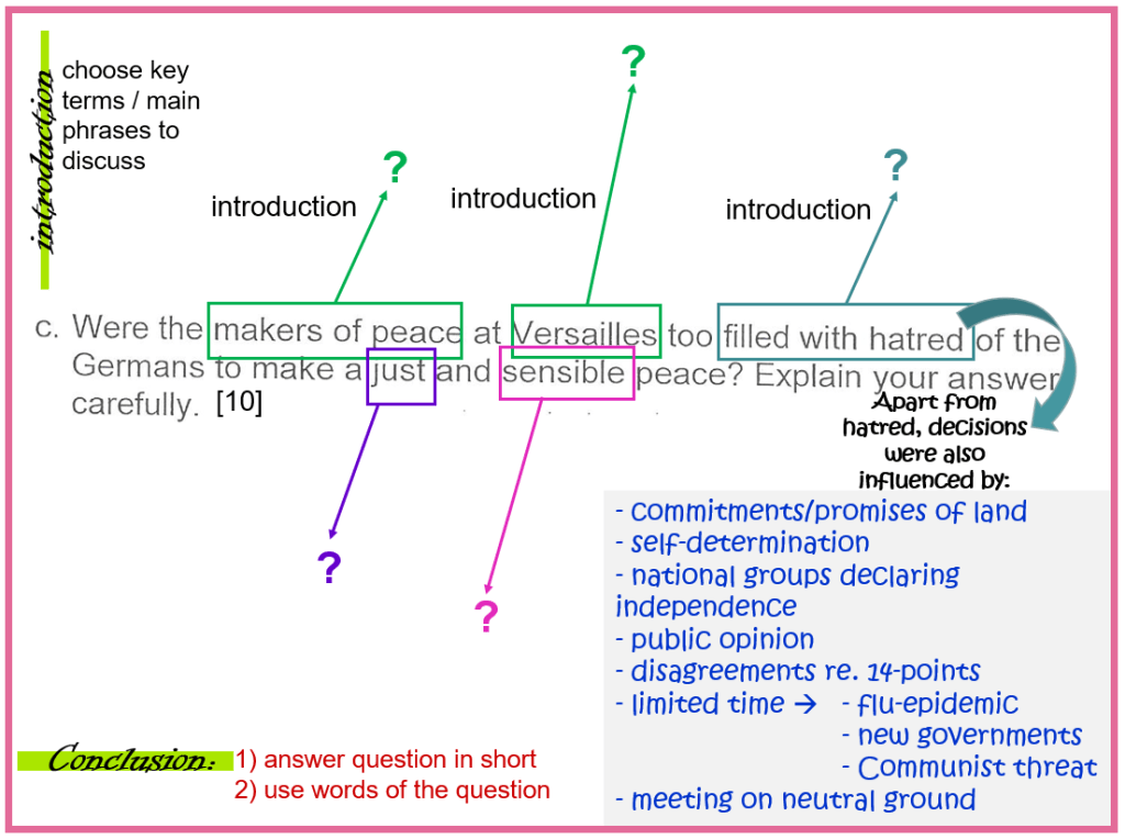 Were the makers of peace at Versailles too filled with hatred of the Germans to make a just and sensible peace? (10)