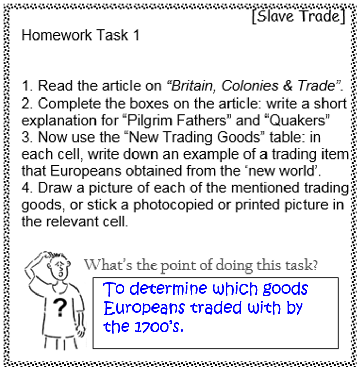 You may need to google the two definitions…! Or, look at the lesson on “Triangular Trade” (on Schoology) for help…