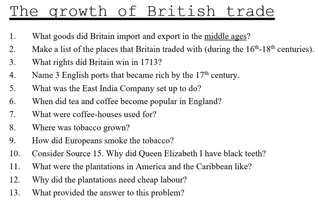 Today you are going to investigate the Middle Passage in a bit more detail, by watching some video clips that explain the Atlantic crossing…