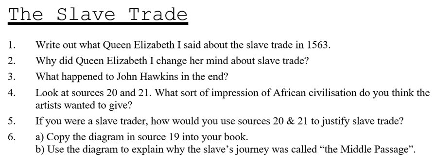 Today we are going to test your knowledge and understanding of what you know about the Slave Trade so far…