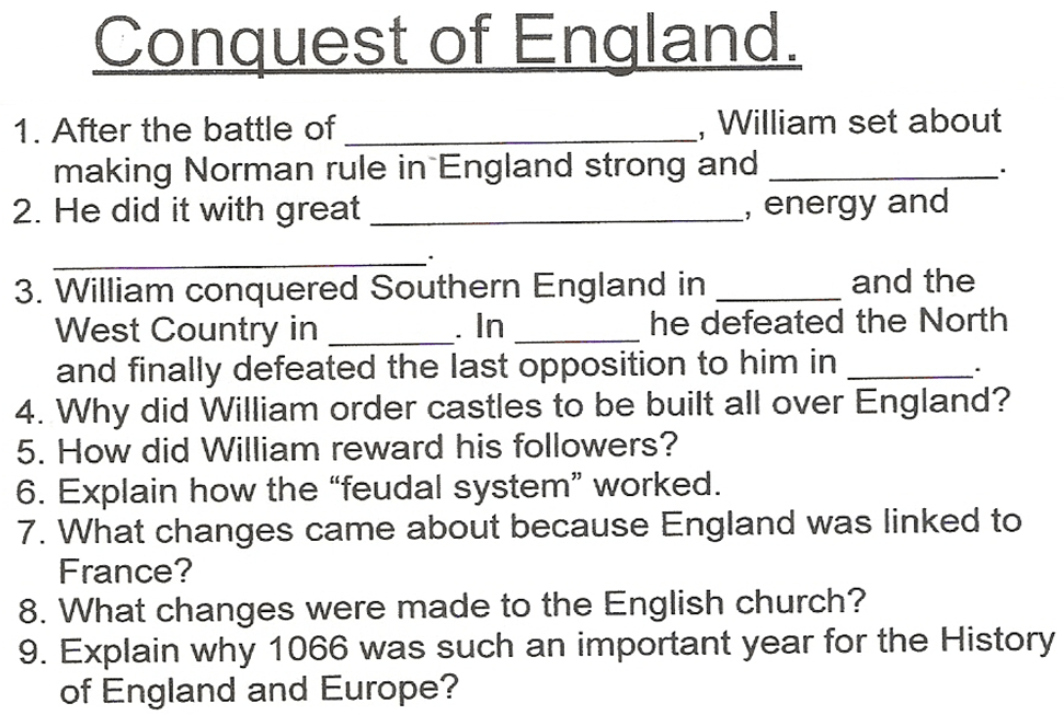 Conquest of England – fill-in notes. (2:05 minutes long)