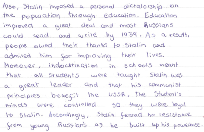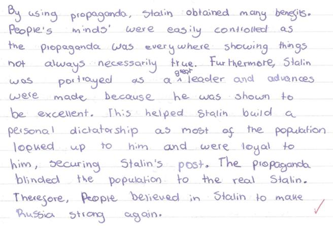 ‘Stalin’s use of propaganda was the main reason he was able to establish a ‘personal dictatorship’.’ How far do you agree with this statement? Explain your answer. (10)