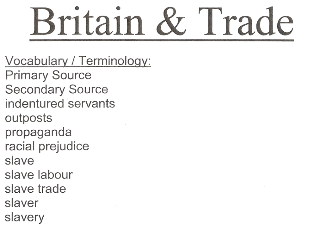 You need to be familiar with the vocabulary on Slave Trade…