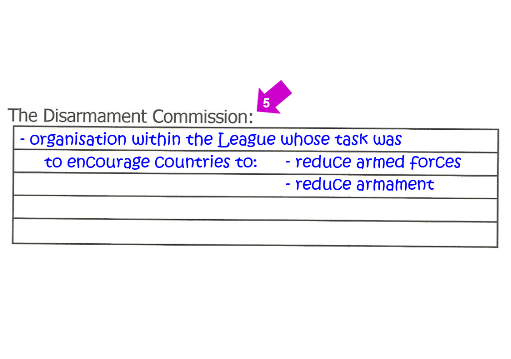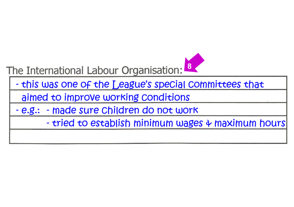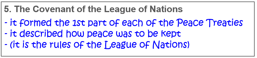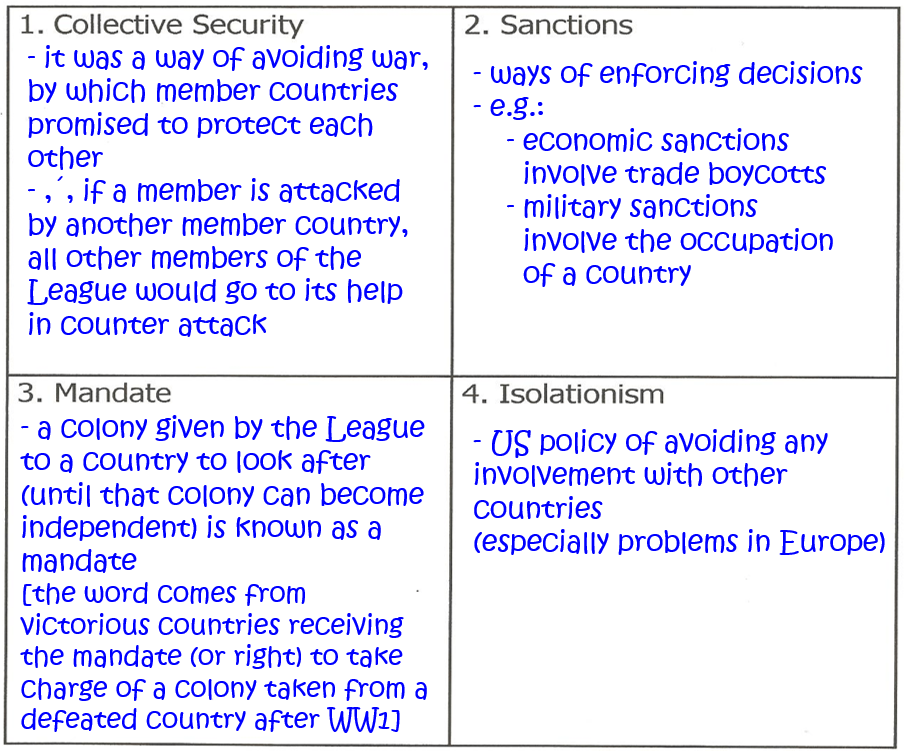 Complete the information boxes on page 8 by writing down the correct explanatory notes for the terminology relevant to the League of Nations: