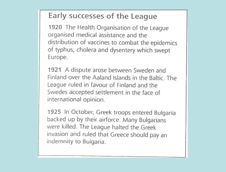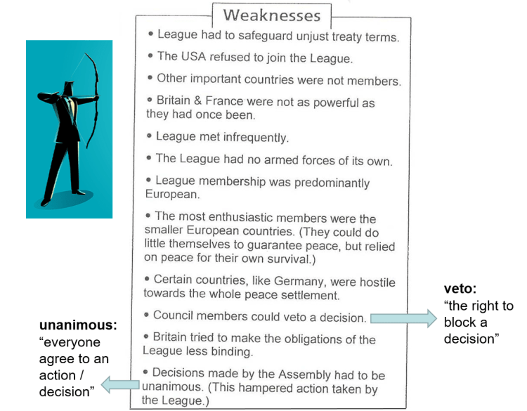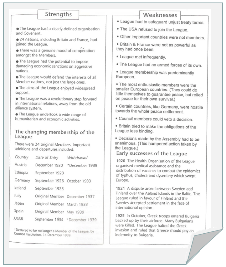 Page 7 in your booklet mentions more weaknesses of the League of Nations, as well as some strengths of the League. Also read over these!