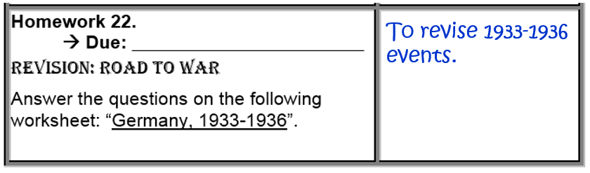 First revise the period 1933-1936 from your booklet on The Road to War. Then answer the questions in point form.