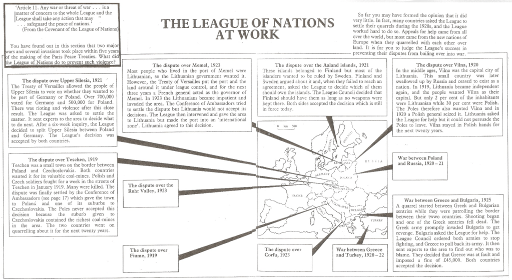 Look at the diagram (on p.16-17) on “The League of Nations at work”.