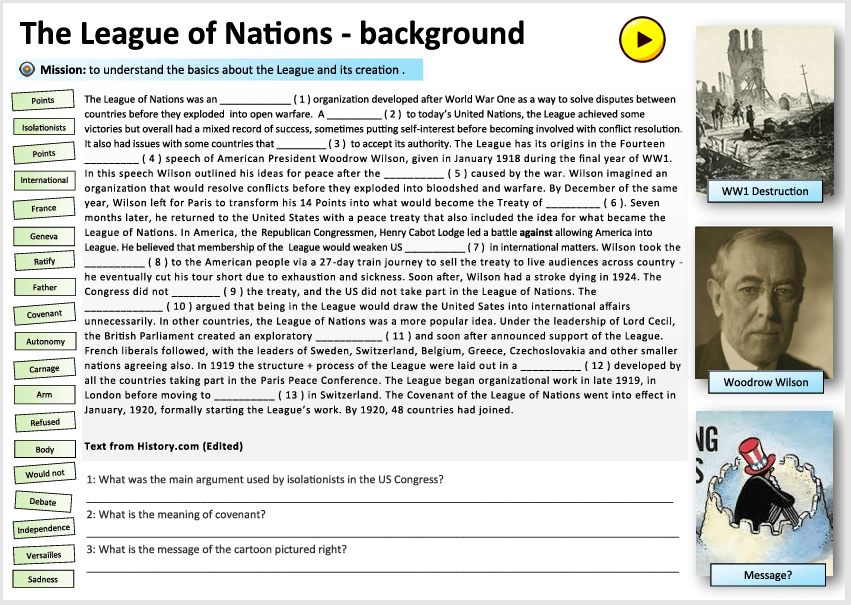 Today you are going to answer some Questions about the League of Nations to consolidate what you know about the League so far.