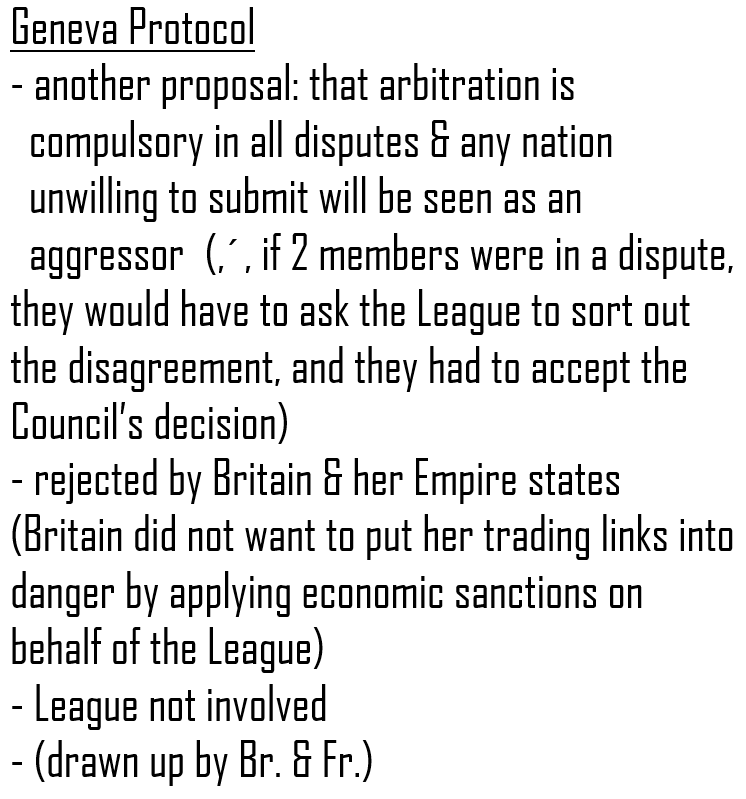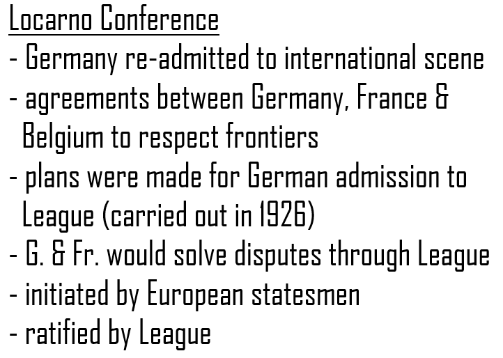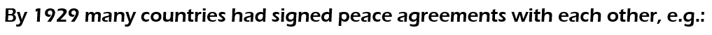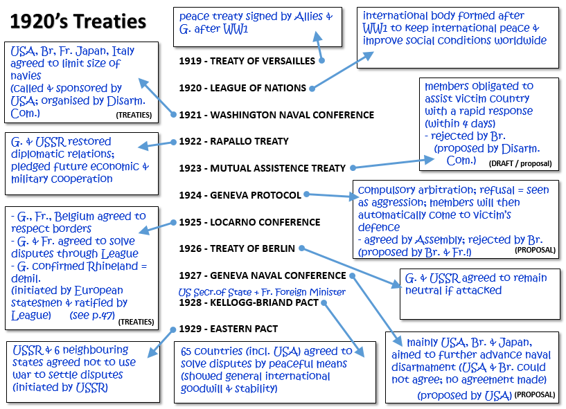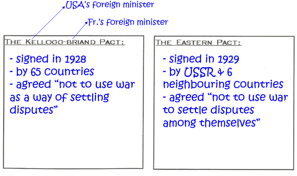During the 1920’s there were a number of attempts to ensure lasting peace globally. These attempts did not always directly involve the League of Nations. Here are a few examples of such attempts.