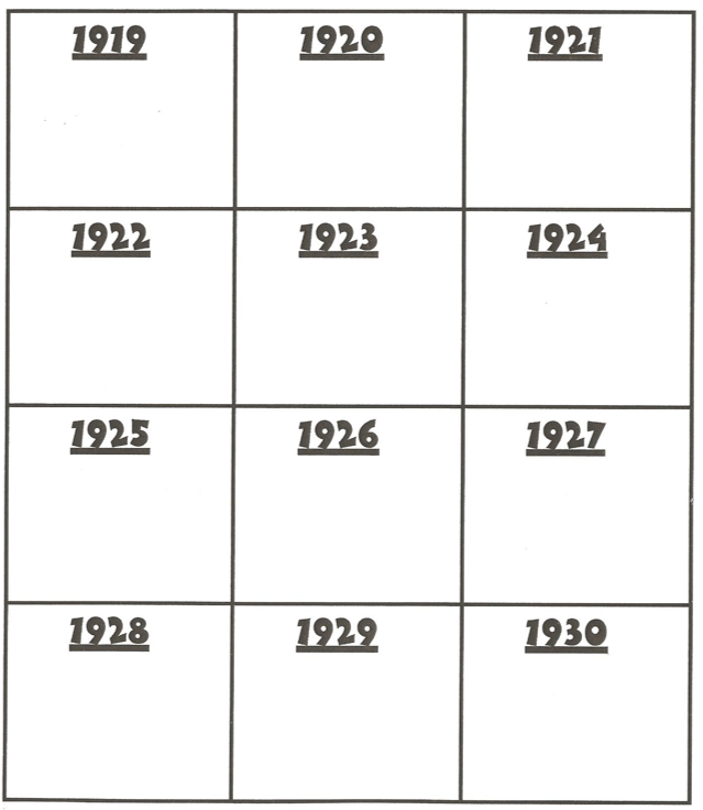 Fill in the 1920’s calendar on p.39 of your booklet by cutting and pasting the relevant information in the corresponding year on the calendar.