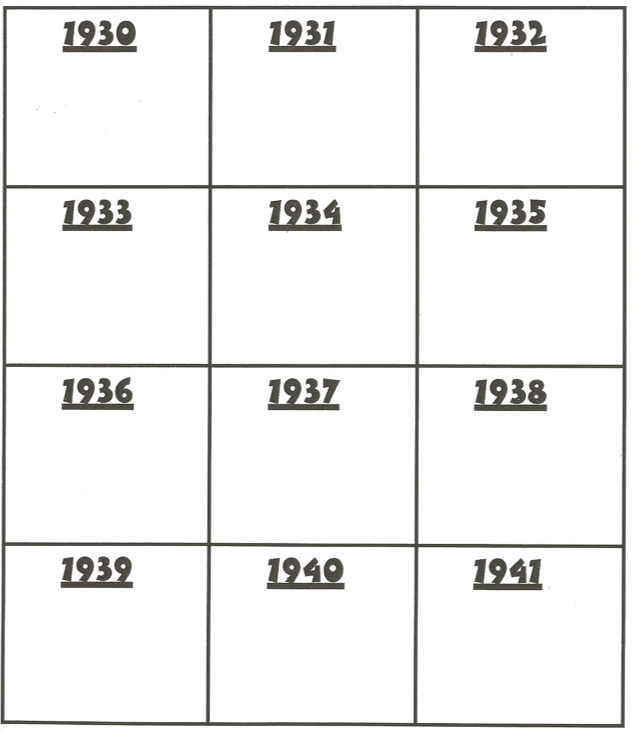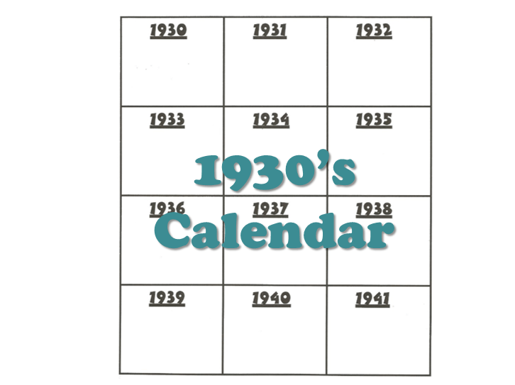 Fill in the 1930’s calendar on p.66 of your booklet by cutting and pasting the relevant information in the corresponding year on the calendar.