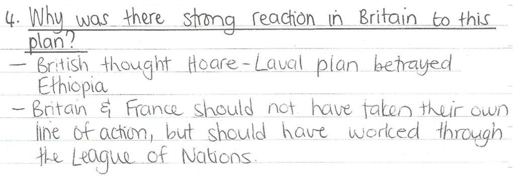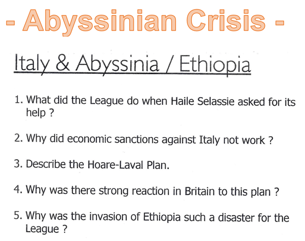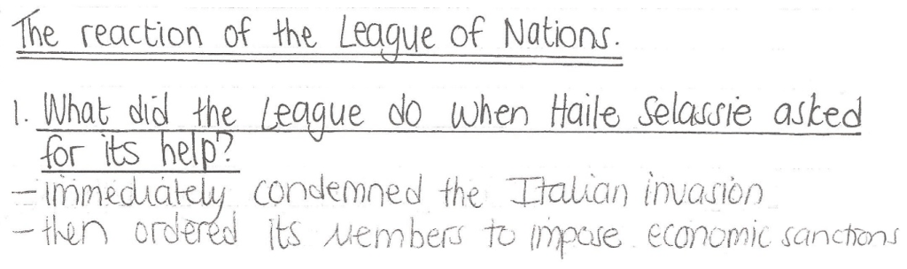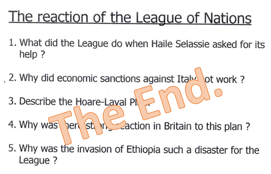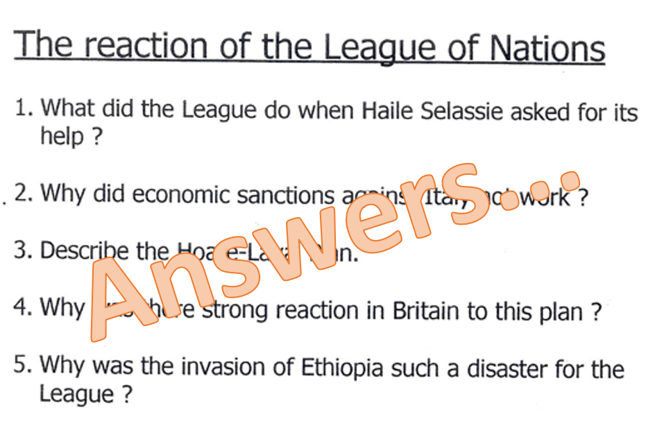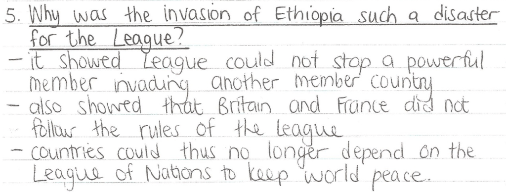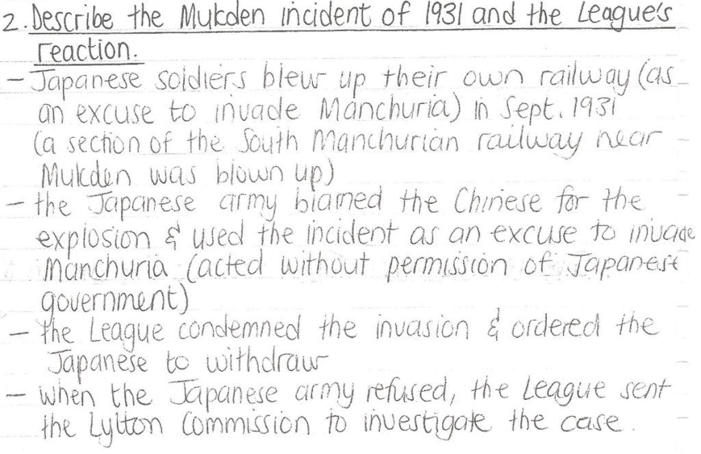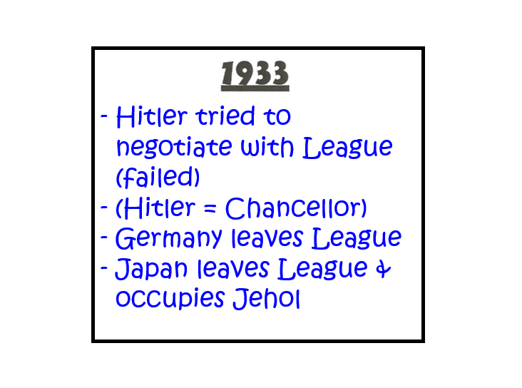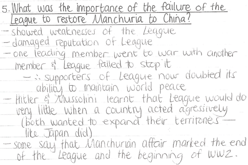 Pages 63-65 in your League of Nations booklet give some guidelines as to how to answer a question about “WHY” the League was a failure. (Remember that why-questions require clear reasons that are well explained!)