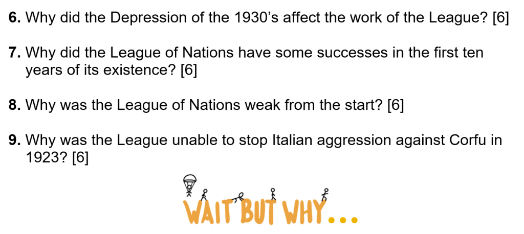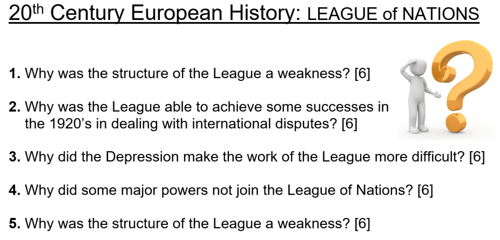 Below are typical 6-mark exam questions on The League of Nations. Will you be able to answer these questions?