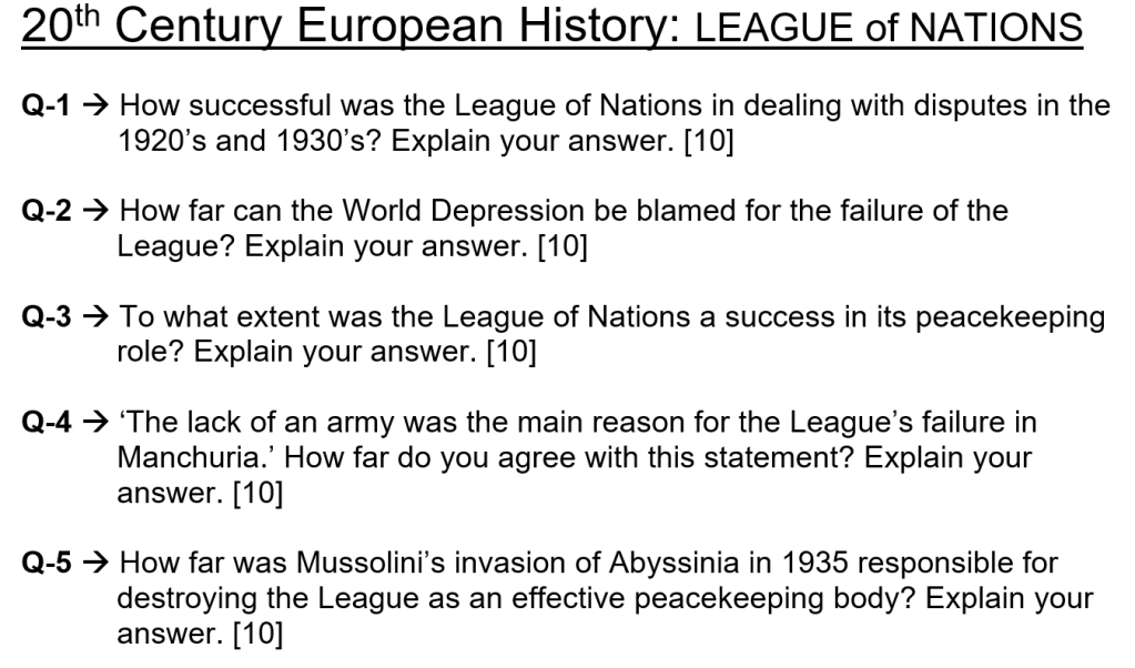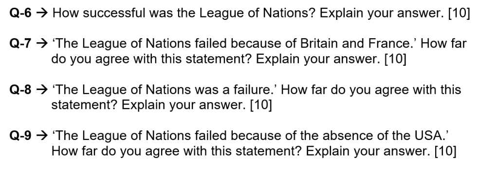 Below are typical 10-mark exam questions on The League of Nations. Will you be able to answer these questions?