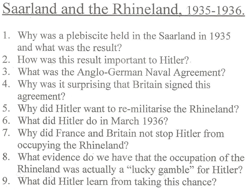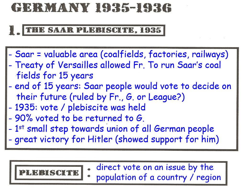 Today you are going to examine Germany’s actions in 1935 and 1936, when she experienced a couple of unexpected victories!