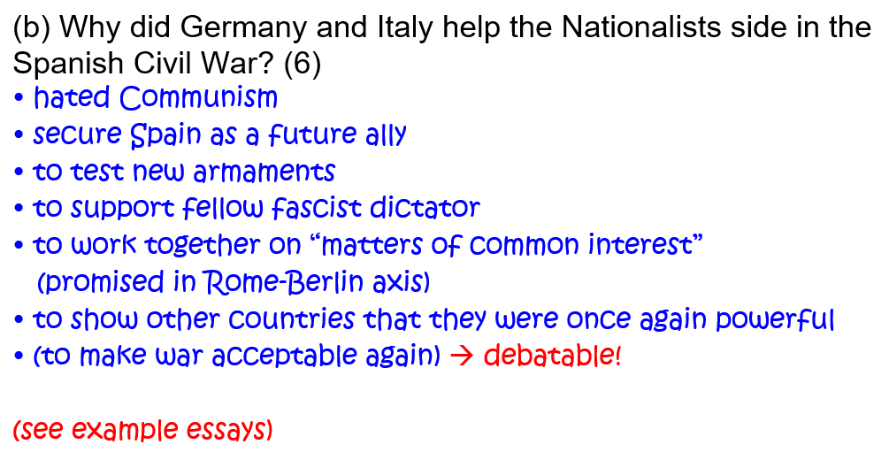 (b) Why did Germany and Italy help the Nationalist side in the Spanish Civil War? [6]