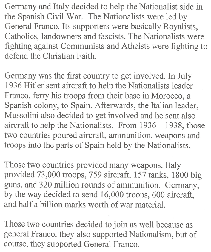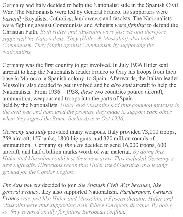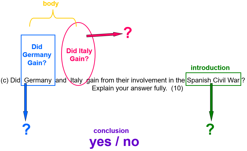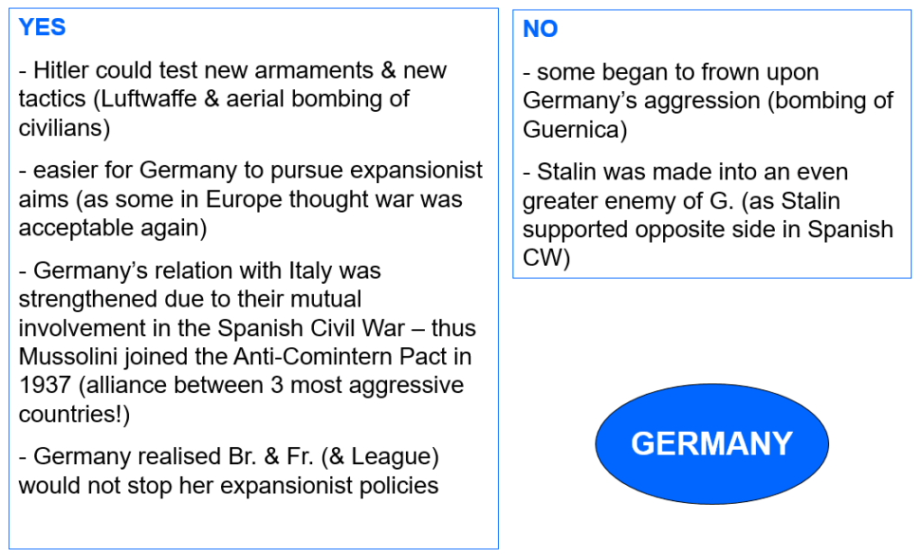 (c) Did Germany and Italy gain from their involvement in the Spanish Civil War? Explain your answer fully. [10]