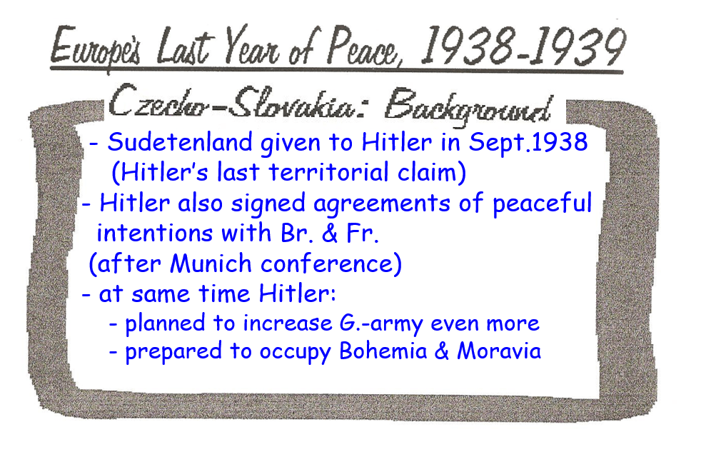 Let’s now see what happened to the rest of Czechoslovakia after the Sudetenland was given to Germany…