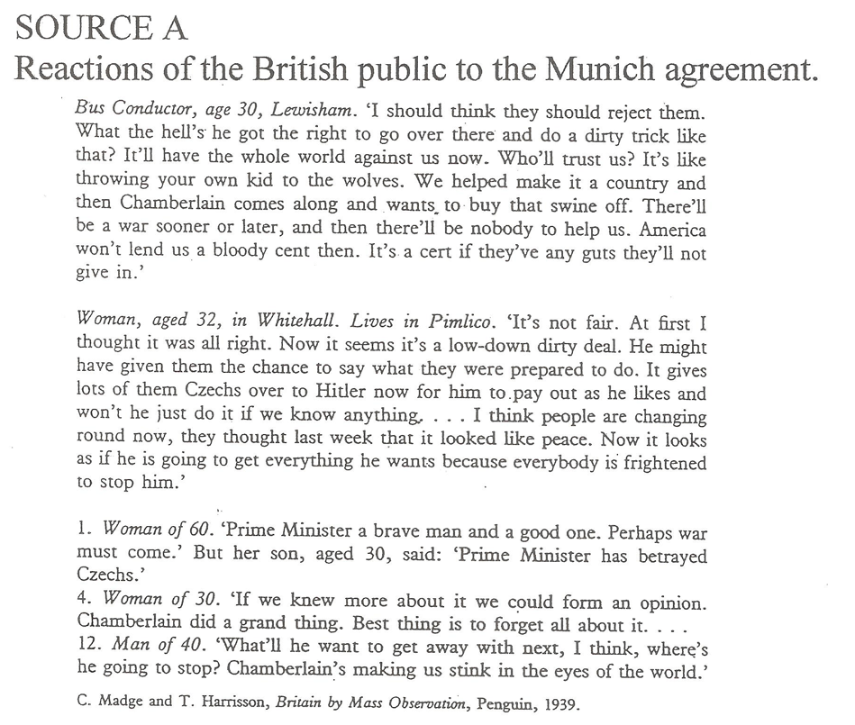 (e.g. The “Anglo-German Agreement” = Hitler & Chamberlain declared they “wish never to go to war with each other” = the “peace of paper”)