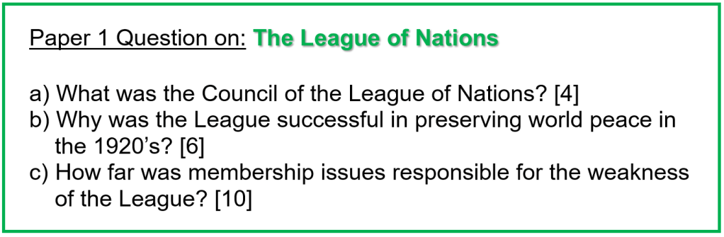You will now work on the following Paper 1 exam question on the League of Nations: