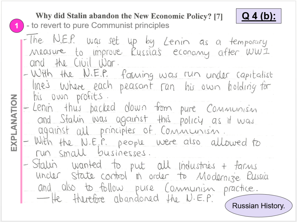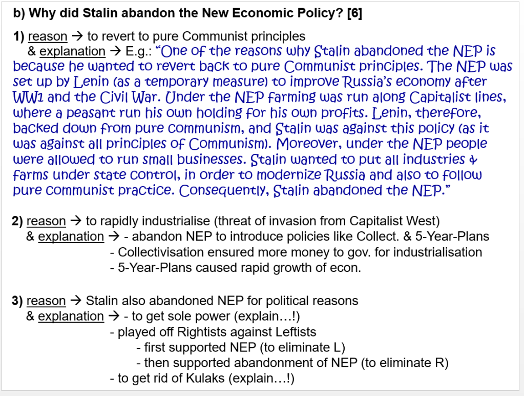 b) Why did Stalin abandon the New Economic Policy? (6)