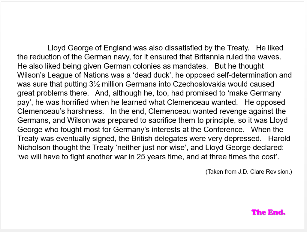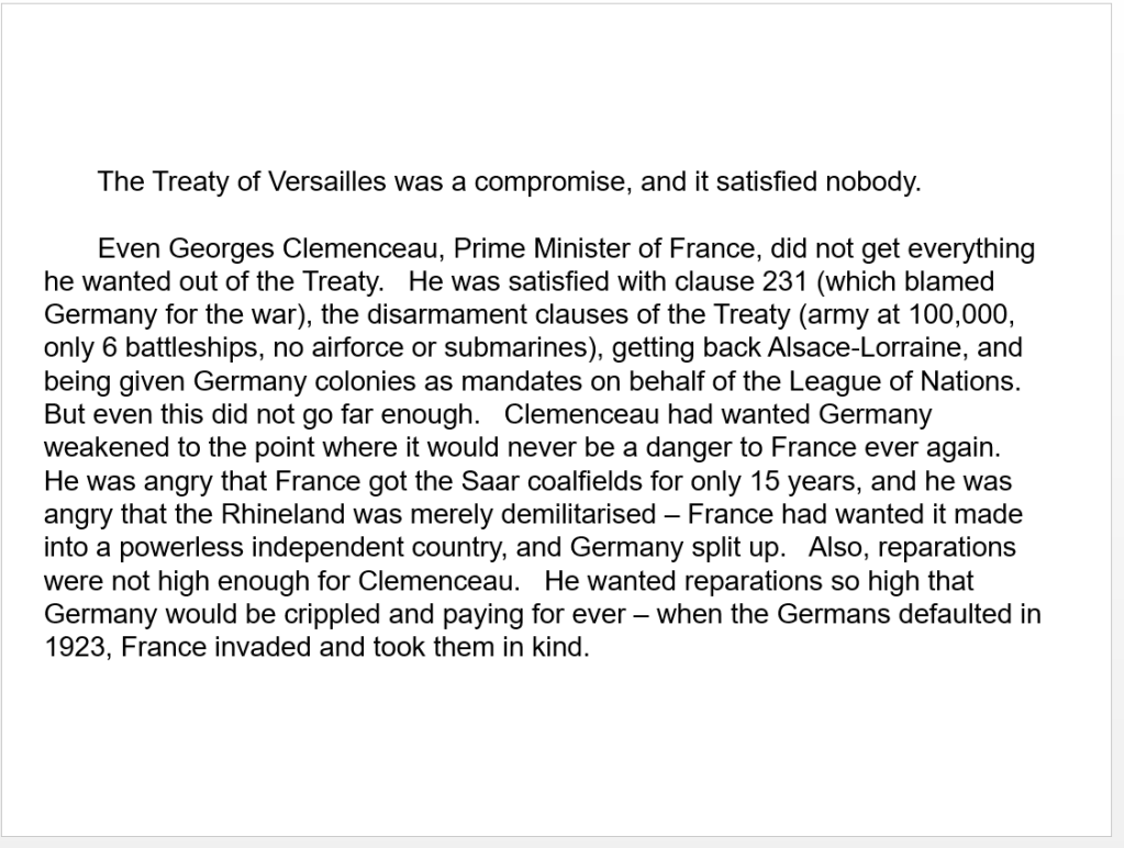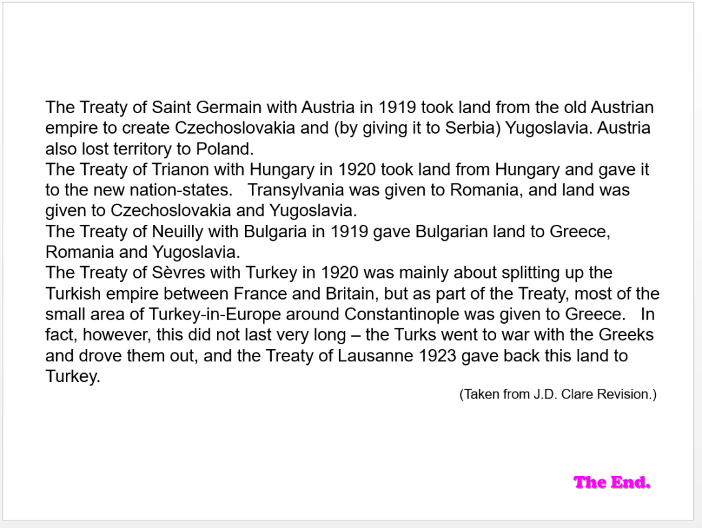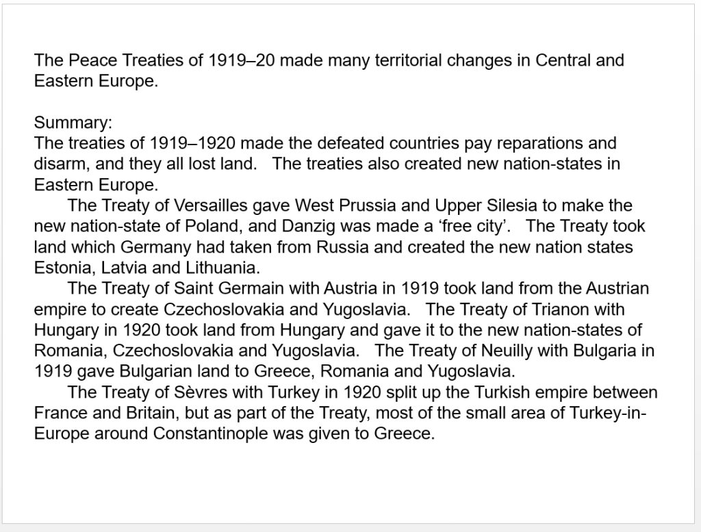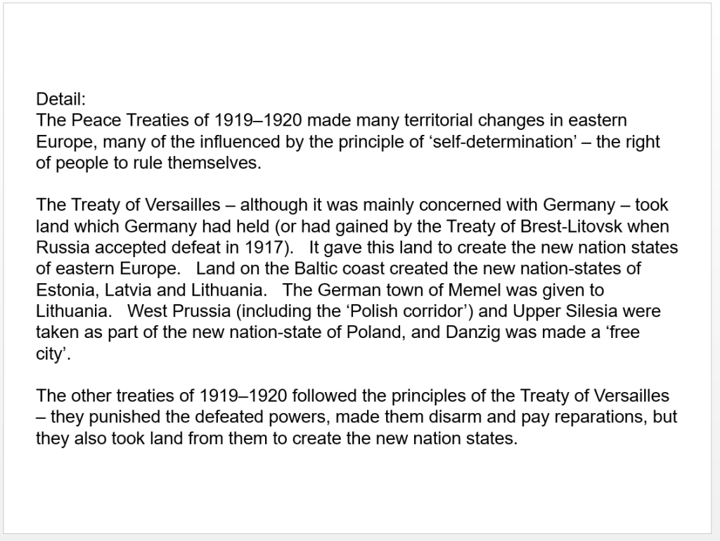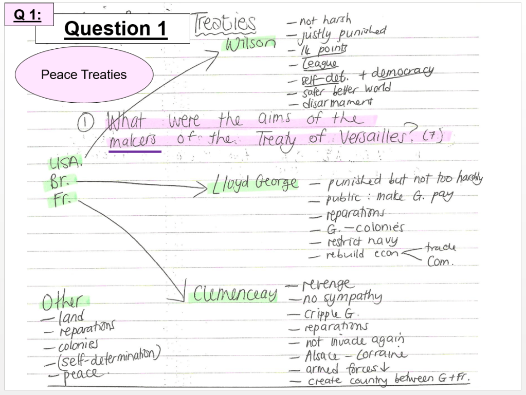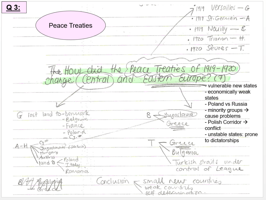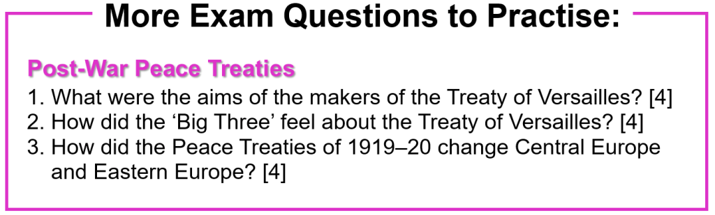 You will now work on a few more Paper 1 exam question on the Post War Peace Treaties: