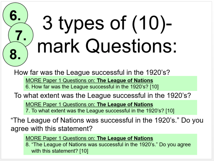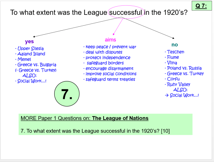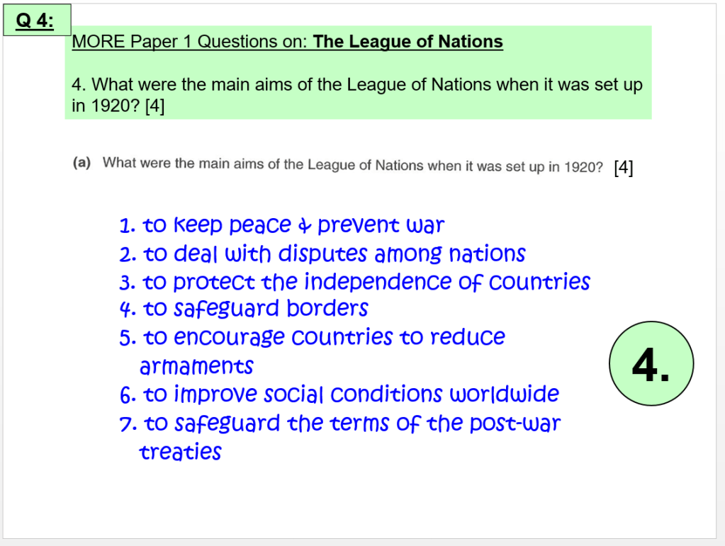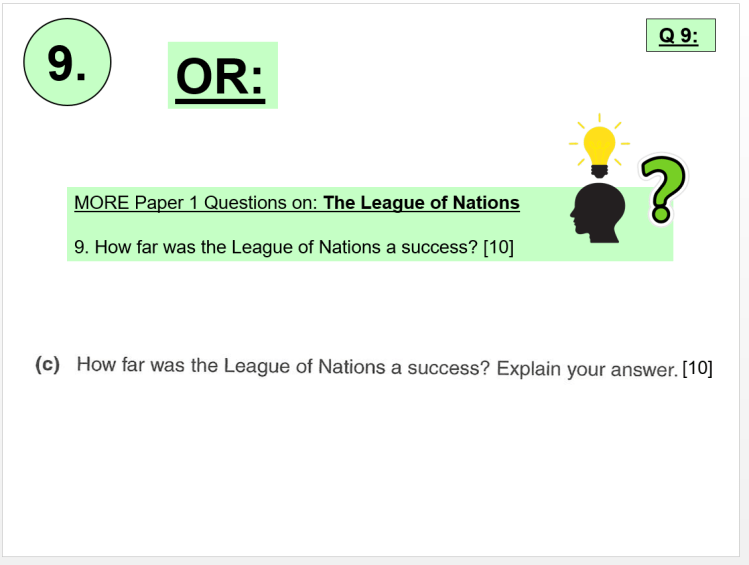 You will now work on a few more Paper 1 exam question on the League of Nations: