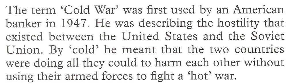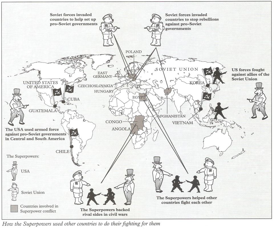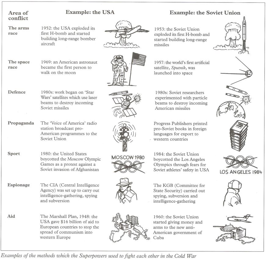 The diagram below shows examples of methods used by the Super Powers to “fight” each other in the Cold War: