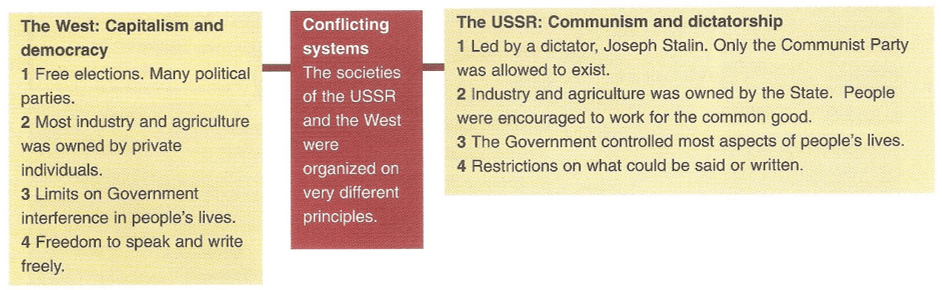 - contrasting economic systems (capitalism vs. communism)