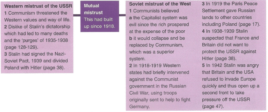 - mistrust (starting years before when Russia left WW1)