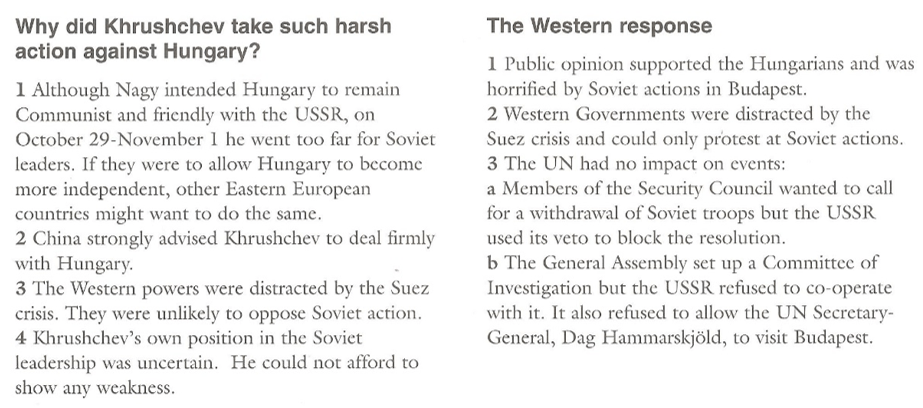 The above notes mention that the West was “distracted by the Suez Crisis”. Below is a brief explanation as to what the Suez Crisis was…